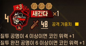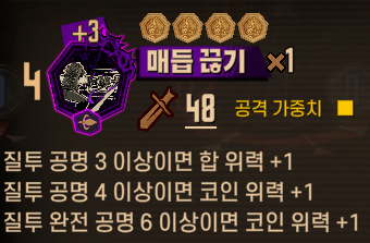 단순히 질투(보라색) 스킬을 4개 쓰면 코인 위력이 1 올라가서 스킬의 최대 위력이 4 상승합니다.