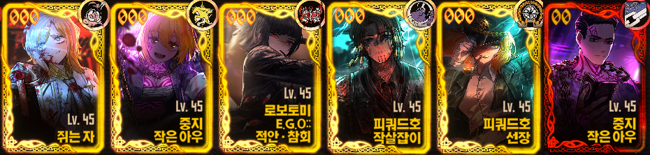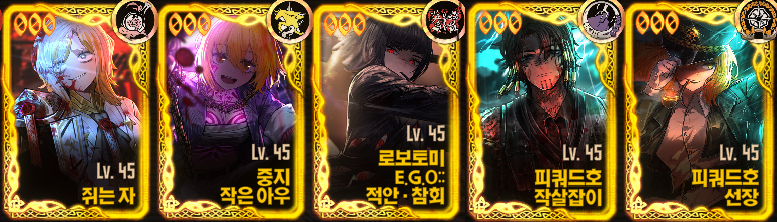 림버스 컴퍼니에선 실제 전투에 투입되는 인격은 5~7명이기 때문에 투입되는 인격을 보여드리자면 아래와 같습니다.